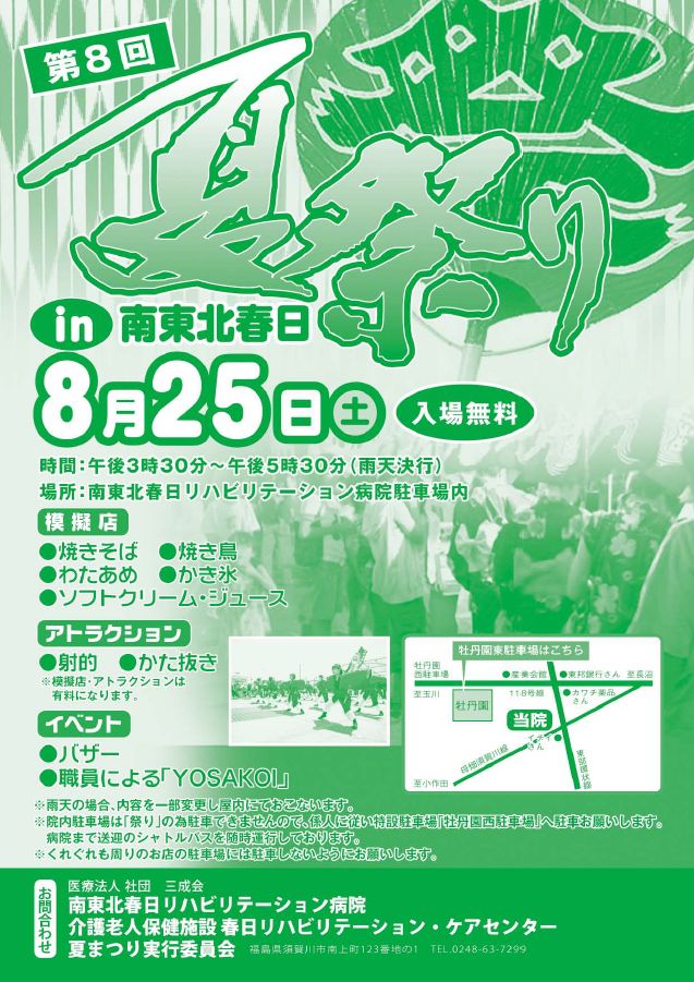 南東北病院グループ 夏祭り&秋祭り2012 2012.08.03(金) 夏祭り&秋祭り2012 夏祭り 財団法人 脳神経疾患研究所 附属 総合南東北病院(福島県郡山市)