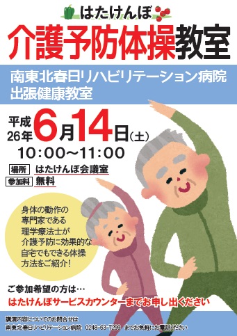 市内はたけんぼにて、参加自由の「介護予防体操教室」開催!
