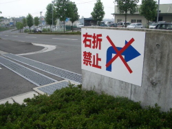 このほど、当施設東部環状線側出口に写真の標識を設置しました。こちらは片側二車線になっており、中央分離帯に気付かずに右折してしまう恐れがあるということで、患者さんから「右折禁止の標識がありませんが、危険ではありませんか」とのご指摘があり、これに対応したものです。実際に環状線側出口から右折した車を目撃したスタッフもおり、今回設置した標識が事故を未然に防ぐために役立ってくれると思います。患者さんや利用者さん、ご家族の方でこちらの出口を利用される方は十分注意していただくよう、お願いいたします。