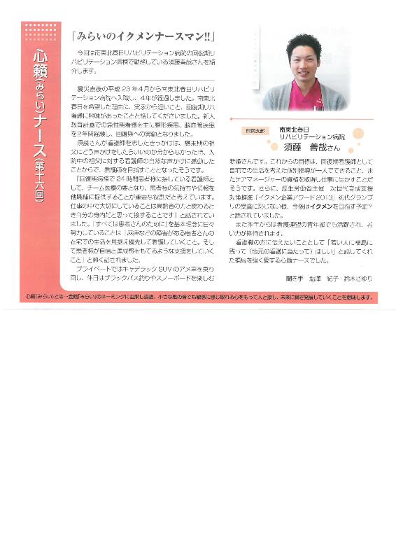 看護ふくしまvol93協会だよりに当院の看護師、須藤善哉さんが掲載されました。