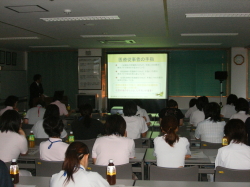 9月10日(水)、当施設5階会議室で「手洗いについて」の勉強会を行いました。健栄製薬会社の方を講師に迎えて、手洗い・手指消毒による感染防止対策の重要性と方法について学びました。ある報告によると、手洗いしてもその手指には約3800個の黄色ブドウ球菌がいるとも言われており、院内感染を防ぐためにも、処置前後のきちんとした手洗い、消毒は大変重要です。これまで行っていた手洗いが、感染予防対策という観点から見ると不十分だった点も多少あり、今回の勉強会で学んだことを活かし、今後確実な手洗い、消毒を行い、注意をはらって院内感染の予防につなげていきたいと思います。
