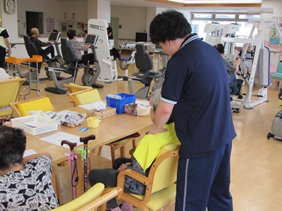 現在、現場経験を積んでもらう為、通所リハビリにて介護業務に