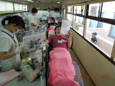 10/15(木)、4月の献血に引き続き、今回も献血バスにお越し頂き献血を行いました。