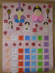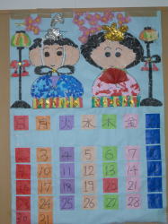 当施設4階、回復期リハビリテーション病棟の患者さんの作品を紹介します。病棟では患者さんと職員の共同作業による手作りカレンダーを毎月制作しています。今月3日は桃の節句ということで、それに因んだ、かわいらしいカレンダーが完成しました!