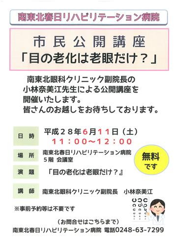 南東北眼科クリニック副院長 小林奈美江先生による公開講座を開催致します。