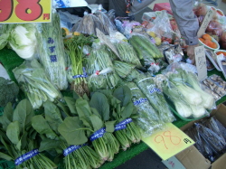まちなかプラザには当院の健康チェックコーナーの他にも、キレイなお花や採りたての野菜、果物などたくさんの商品が売られています。写真は健康チェックの様子とまちなかプラザに出店していた八百屋さんです。新鮮で珍しい野菜や果物がたくさん並び、人気を集めていました。