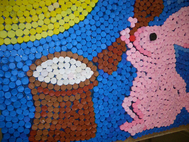 ペットボトルのキャップでうさぎの絵を作りました!!