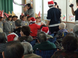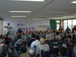 12月10日(水)午前10時から、鏡石町・岡ノ内幼稚園の子供たちによるクリスマスお遊戯会が当施設5階会議室で開催されました。お遊戯会では、子供たちがこの日のために一生懸命練習してきてくれた「星の世界」の合唱と「崖の上のポニョ」のダンスを披露してくれました。会場に集まった患者さん、利用者さんの中には思わず涙ぐむ方もいて大変喜んでいただきました。