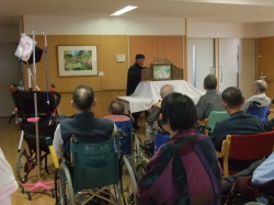 12月20日(土)、午後2時から当施設にたびたび慰問に来てくださっている金山一長さんによる紙芝居がありました。今回のお話はクリスマスにちなんで、サンタクロースのお話でした。お話を聞きに集まった患者さんは熱心に耳を傾けて紙芝居を楽しみました。金山さん、いつもおもしろいお話をありがとうございます!!