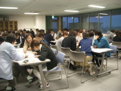 3月11日(火)、当施設5階会議室で、拘束についての勉強会を行いました。いつも行っている勉強会と方法を変えて、約6名ずつのグループに分かれ、設定した9つの拘束の種類について、検討を行いました。グループは医師、看護師、介護士、リハビリスタッフ、検査技師、事務系スタッフそれぞれが重ならないように集まり、各専門職の目からみた様々な意見が飛びかいました。「食事のときはエプロンをしておけば、どんな姿勢で食べこぼしても安全です」「センサー・モニターを使えば未然に危険を予防できます」などがあり、これらの拘束について、行わなれけばならない理由や、なくすための対応策等について話し合いました。今後も患者さんを尊重し拘束を必要としない施設として、チームワークを活かし取り組んでいきたいと思います。