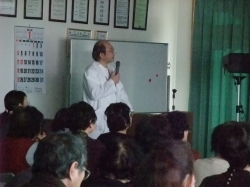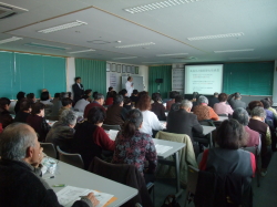 1月24日(土)午後2時から当施設5階会議室で第15回市民健康教室を開催しました。今回は「血圧について」をテーマに後藤恒夫院長が講演しました。日頃気にしている方が多いせいでしょうか、今回は70名近い参加がありました。放っておくと様々な病気を引き起こす原因となる“高血圧”にも“白衣高血圧”と“仮面高血圧”があるというお話では、「知らなかった」「私も病院に来ると血圧が上がる」などの声が聞かれました。また「心血管病の危険性が最も少ないのは血圧が120/80mmHg未満の方です…」というお話があるとみなさん神妙なお顔をしておられました。脳神経外科の専門である後藤院長のお話ということもあり、とてもわかりやすい内容だったと思います。