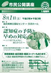 総合南東北福祉センター(福島県郡山市日和田町)で第16回市民公開講座「認知症の予防と早めの対応」が行われます。