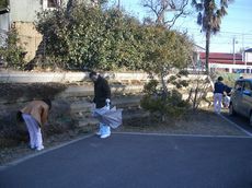 若干雪が残るなか、白い息を吐きながら一生懸命にゴミ拾い、雑草取りを行い、敷地内をよりきれいにすることができました。
