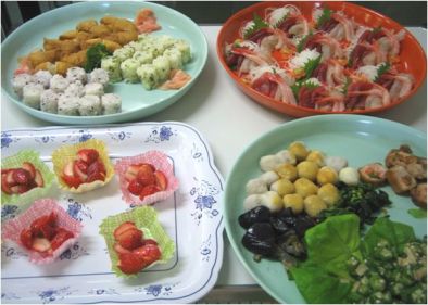 今回はお刺し身をメインとして、デザートにいちごを提供しました。バイキングは普段の食事と違い、食事を選ぶ楽しさがあり、ワクワクした気持ちになります。栄養管理科では患者さん、利用者さんへ、食事の楽しさをより一層感じていただくように精進してまいります。