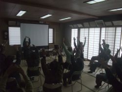 3月12日(金)午後1時30分から、豊郷構造改善センターにおいて出前講座を行いました。当施設の理学療法士の遠藤氏が「介護予防について」をテーマに講義を行いました。現在の介護状況やパワーリハビリテーションとはなど、様々な内容をお話しした後、介護予防体操をみなさんと一緒になって行いました。講師のリズムに合わせて行った体操はなかなか難しいようで大変かと思いましたが、みなさん満足していただけた様子でした。講師からもお話がありましたが、1日体操をやっただけでは介護予防にはなりません。日ごろの体操・運動が大切だと思います。短い時間でしたが、参加されたみなさんの健康増進のお役に立てたのではないかと思います。