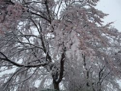 この時期の桜は5.6分咲き位になっていたので雪の重さに桜が苦しそうな姿になっていました。見る側は桜に雪もなかなか見られないのでいいかなと思いますが、やはり桜の季節には暖かいのが一番ですね。今年は気温差が激しいので体調管理には気をつけてください。