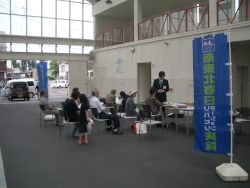 5月22日(土)、須賀川市あきない広場「まちなかプラザ」にて須賀川商工会議所主催の「あきんど祭り」が開催されました。今回も当院から職員4名が参加させていただきました。当日は近所のお店でセールがあったので会場にはたくさんのお客さんに来ていただけました。当院の健康チェックコーナーも大忙しで、一息つく時間もないまま時間になってしまいました。日頃なかなか街のみなさんとお話する機会がないのですが、お互いに情報交換をしたりと大変有意義な時間を過ごすことができました。