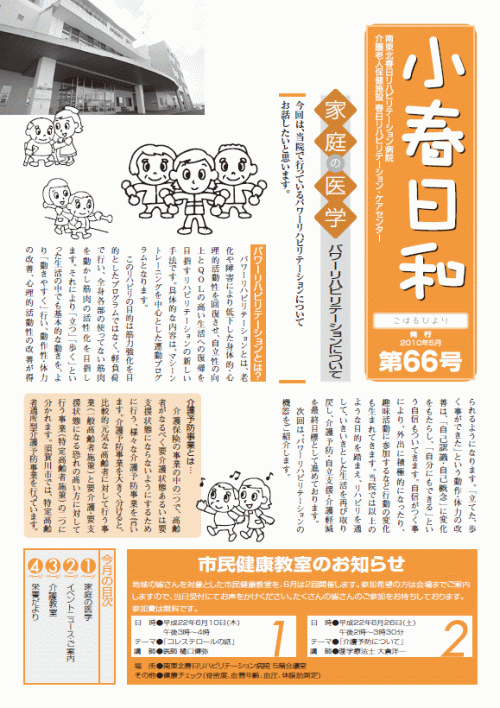 当施設が毎月発行しております広報誌「小春日和」の第66号(5月発行)を掲載しました。
