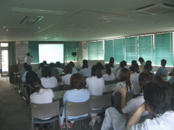 5月23日(金)午後5時30分から当施設5階会議室でISO基礎セミナーを行いました。セミナーでは企業の仕事が生み出す環境への影響、企業活動等から生じた環境に対するあらゆる変化、また当施設の地球環境汚染の予防・保全活動を実践するための仕組みについてISO推進係から具体的な説明がありました。事業活動を行う上で環境にどのような影響を与えているか、また作業を改善した時に環境面でどのような利点があるかを一人一人が自覚して行動しようと、地球環境に対する意識を高めました。