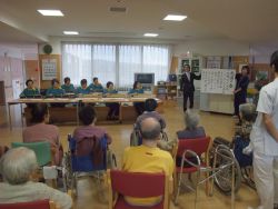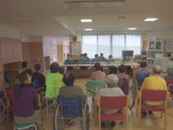 10月24日(月)に4階東病棟で、琴伝流稲田大正琴愛好会のみなさんによる大正琴の慰問がありました。総勢7名のみなさんがそろいの衣装で登場。日頃の練習の成果を披露してくれました。演目は「東京ラプソデー」「かえり船」「函館の女」「北国の春」と患者さんの馴染みの曲を演奏して頂き、患者さんのなかには大正琴の動きを真似する方もいたりと、終始楽しい時間になりました。最後に職員からのアンコールで、「北国の春」を大正琴に合わせてみんなで歌いました。歌い終わるとみんなから今日一番の拍手がおきました。患者さんも唄を歌うことによってリフレッシュできたと思います。また慰問に来て下さい!!