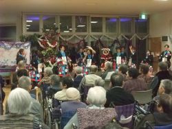 午前の和田幼稚園の子供たちによるクリスマスお遊戯の余韻を残し、午後4時30分にクリスマス会第2部を当院1階ホールにて行ないました。2部の内容は各部署職員による出し物で、水戸黄門や三匹の子豚の喜劇、大喜利&ダンス、じゃんけん大会など職員が工夫を凝らした出し物に患者さん、入所者さん共に楽しんでいただけました。その後、病院から患者さん、入所者さんへクリスマスプレゼントを渡し閉会しました。今年も患者さんに喜んで頂き、大成功でした。これからも患者さん、入所者さんに喜んでもらえるような行事を企画していきます。