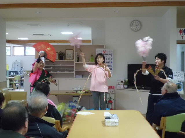 リハデイ石川便り 慰問 南京玉すだれがありました。