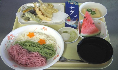 南東北春日リハビリテーション病院の、七夕行事食は星がいっぱい★天の川をイメージした素麺や暑い季節にピッタリの冷製卵豆腐など、好評いただきました。