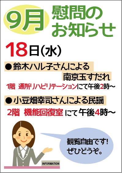 9月の慰問のお知らせ★スタッフホスピログ
