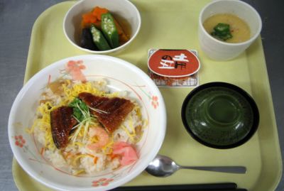 ■うなぎちらし■夏野菜の煮物 ■冷やし茶碗蒸し蟹あんかけ ■すまし汁 栄養価 |