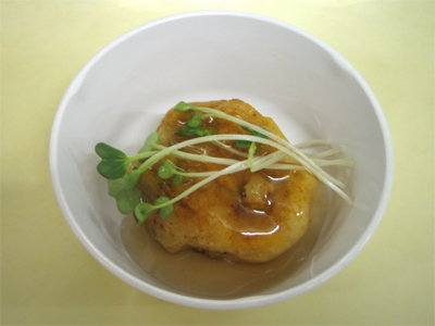 DBを器にもりあんをかけ、貝割れ大根を飾る。